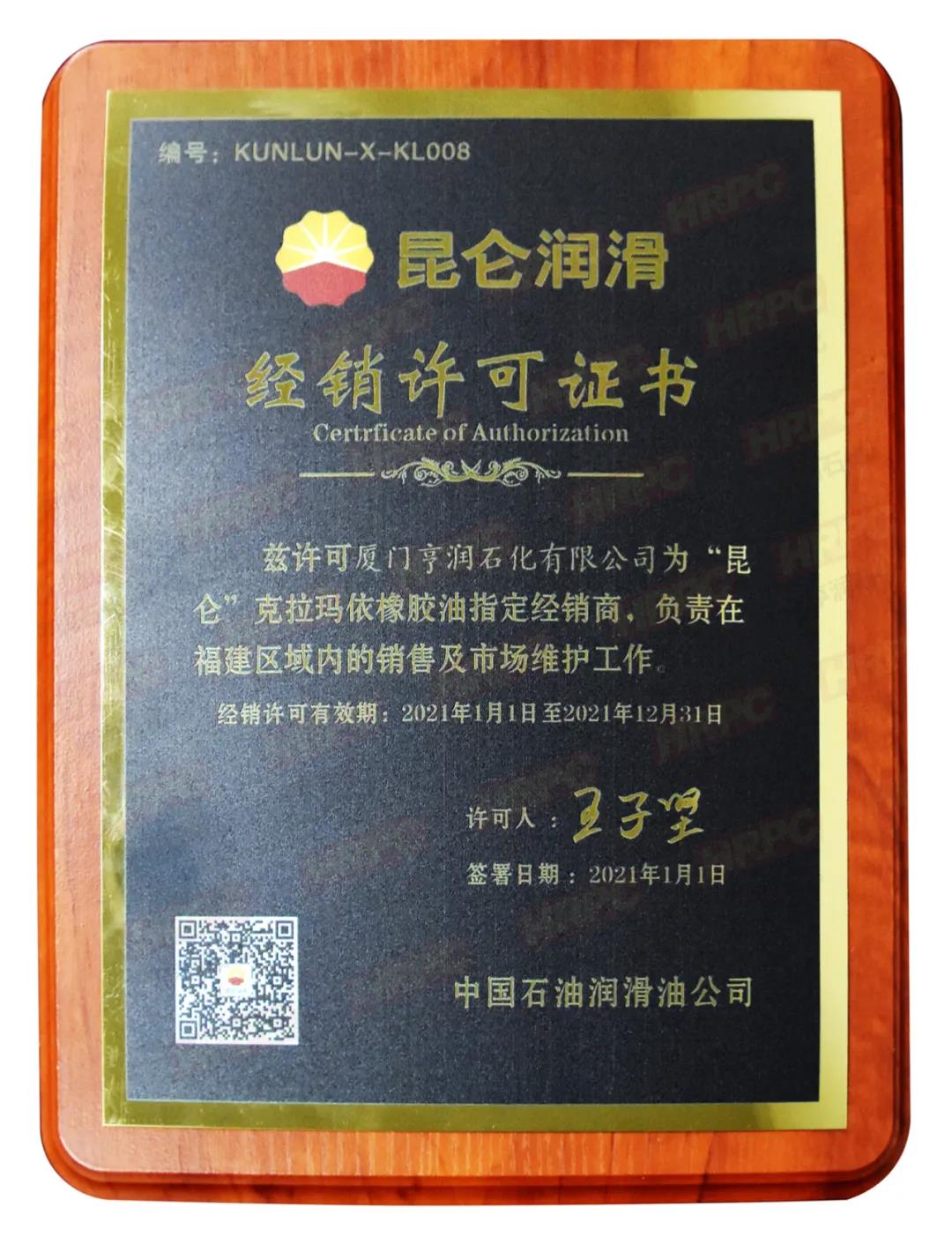 亨润石化公司获中国石油授权2021年度福建区域指定经销商