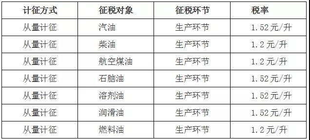 2019年成品油消费税税率税目表