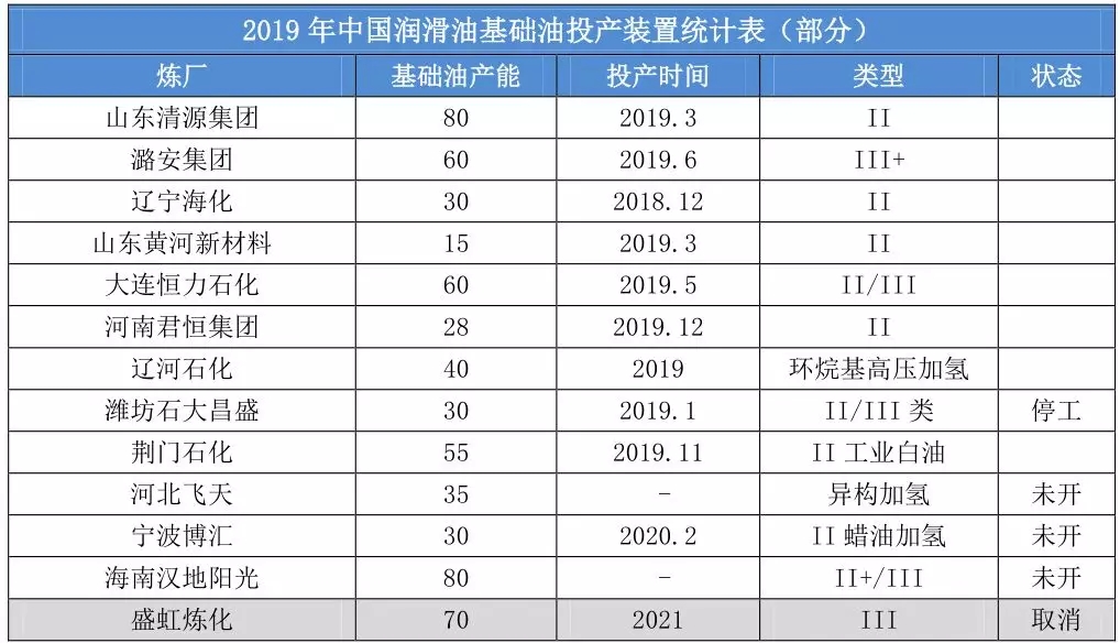资讯 | 2019年中国润滑油基础油市场盘点