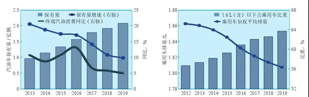 ①汽油车保有量增速放缓、排量小型化拉低汽油消费