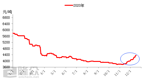 原油拉涨,带动国内小粘度白油价格飞涨,截止到12月下旬,国内5#工业白油均价从11月初的3790元/吨涨至4350元/吨,涨幅高达14.78%。