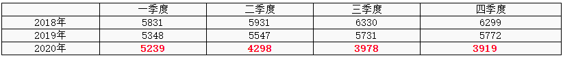 表 2018-2020年国内5#白油季度价格对比