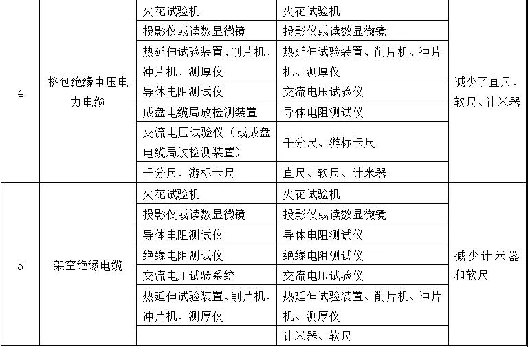 表3-2企业生产电线电缆产品应具备的检验设备