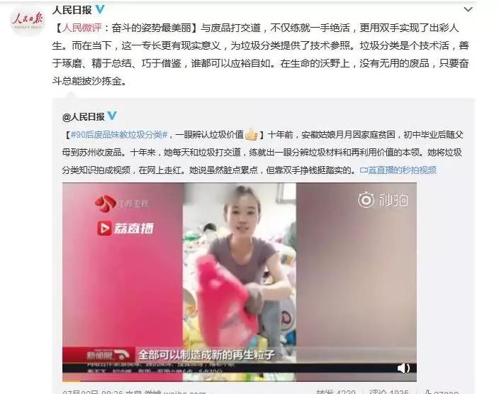 热点丨垃圾分类,你会分吗?人民日报点赞90后废塑料回收工作者