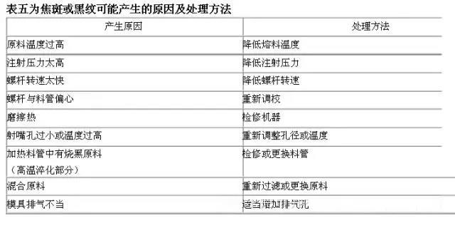 五、制品有焦斑或黑纹