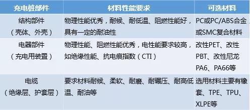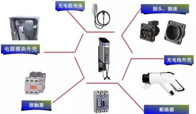 充电桩的组成大体可分为结构部件、电器部件和线缆等,各部件选材会依据材料性能要求而有所不同: