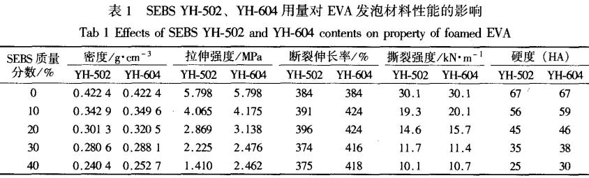 1.SEBS用量对EVA发泡材料性能的影响